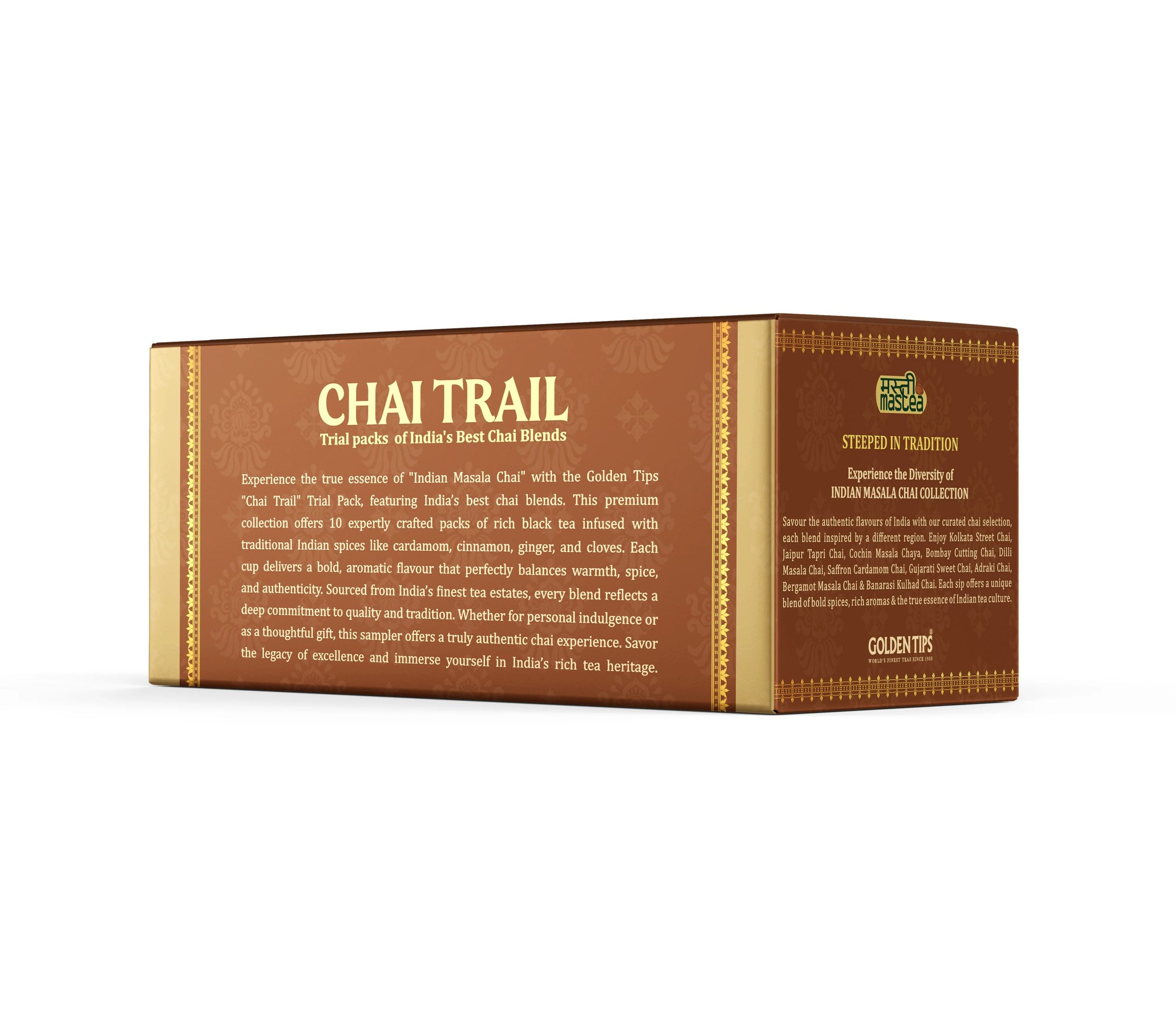 Savour the authentic flavours of India with our curated chai selection, each blend inspired by a different region. Enjoy Kolkata Street Chai, Jaipur Tapri Chai, Cochin Masala Chaya, Bombay Cutting Chai, Dilli Masala Chai, Saffron Cardamom Chai, Gujarati Sweet Chai, Adraki Chai, Bergamot Masala Chai & Banarasi Kulhad Chai. Each sip offers a unique blend of bold spices, rich aromas & the true essence of Indian tea culture.